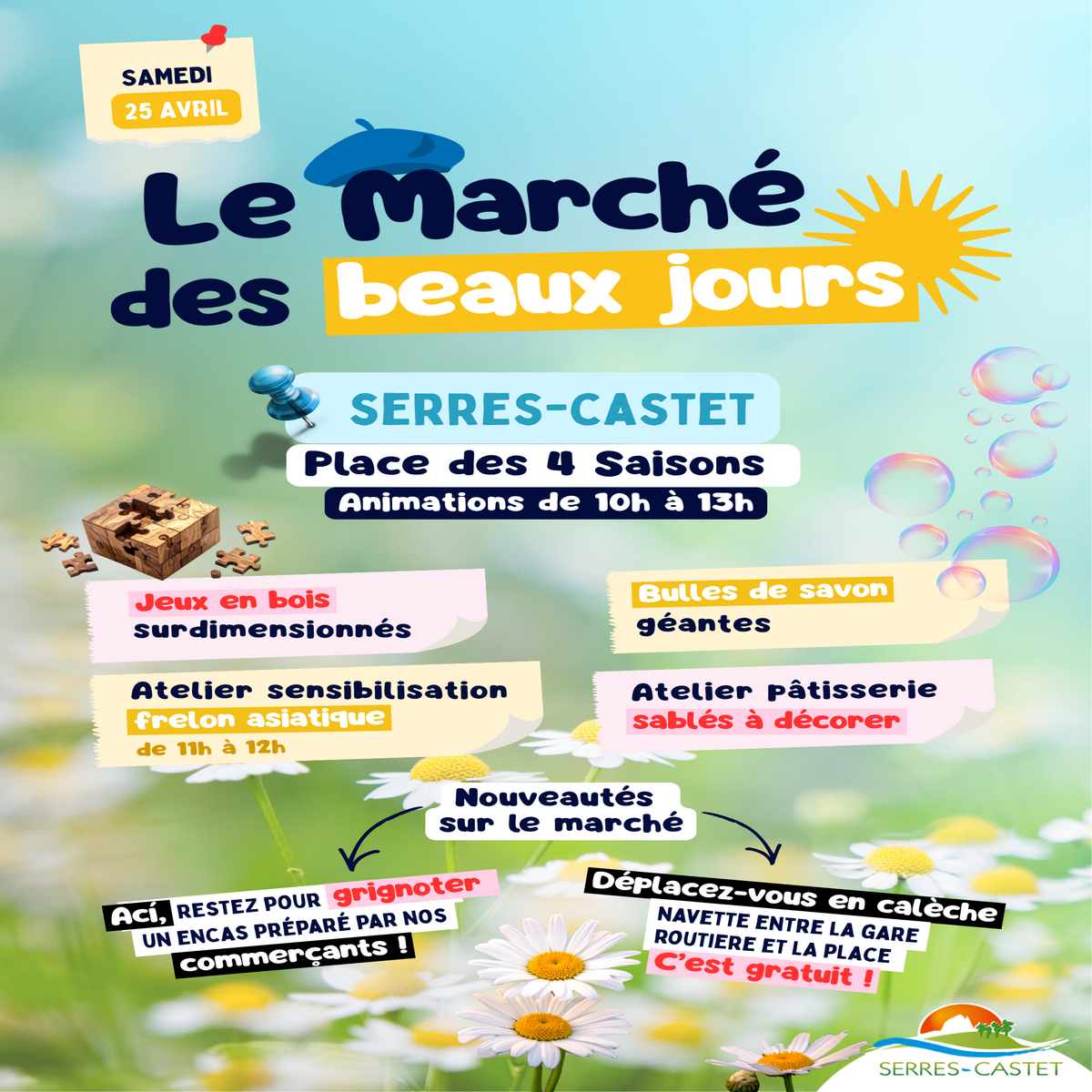 Le printemps s’installe sur la commune Serres-Castet ! Pour célébrer le retour du soleil, la commune vous invite au Marché des beaux jours : une matinée festive placée sous le signe de la convivialité et du partage.