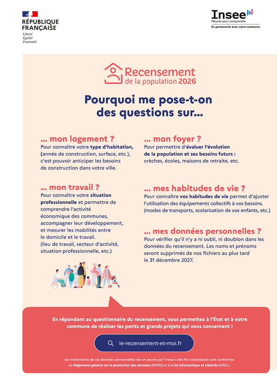 Pour en savoir plus sur le recensement de la population, rendez-vous sur le site le-recensement-et-moi.fr.