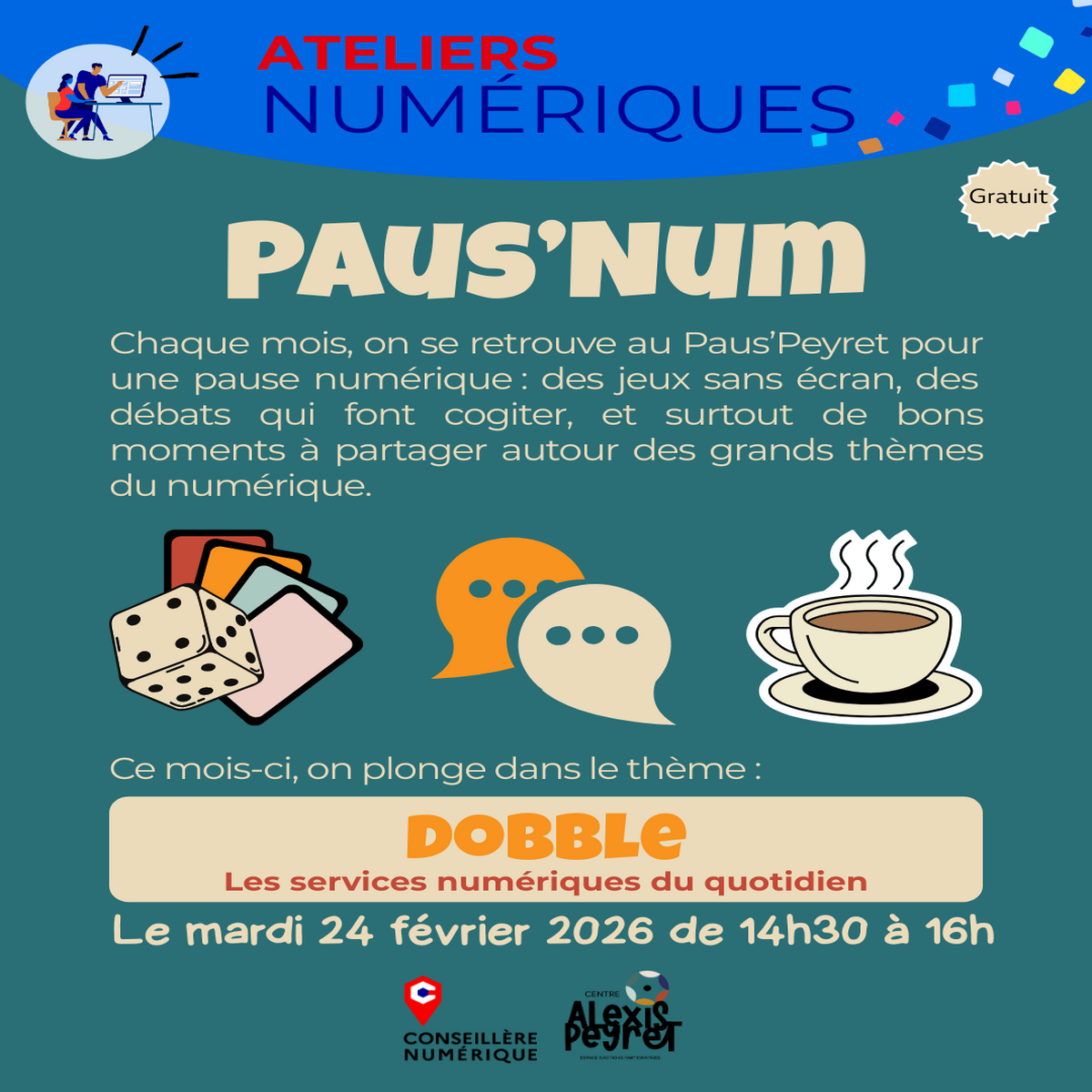 Chaque mois, on se retrouve au Paus’Peyret pour une pause numérique : des jeux avec ou sans écran, des débats qui font cogiter, et surtout de bons moments à partager autour des grands thèmes du numérique.